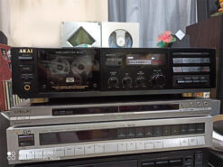 Classic vintage Top class stereo tape deck with Akai’s two field legendary Super GX head, full logic feather touch mechanism, 2 Motor, auto tape selector, double dolby, digital peak level display, measuring options. For various types of bans, classified as good-very good, microprocessor control, silent mechanism, DC coupled amplifier, record protection, shock absorption, title search IPLS function, recording level, RCA in out connections etc. Very good working condition.