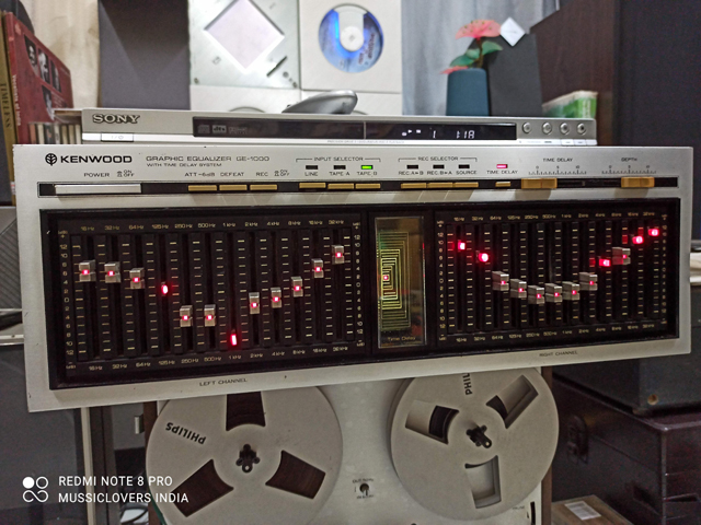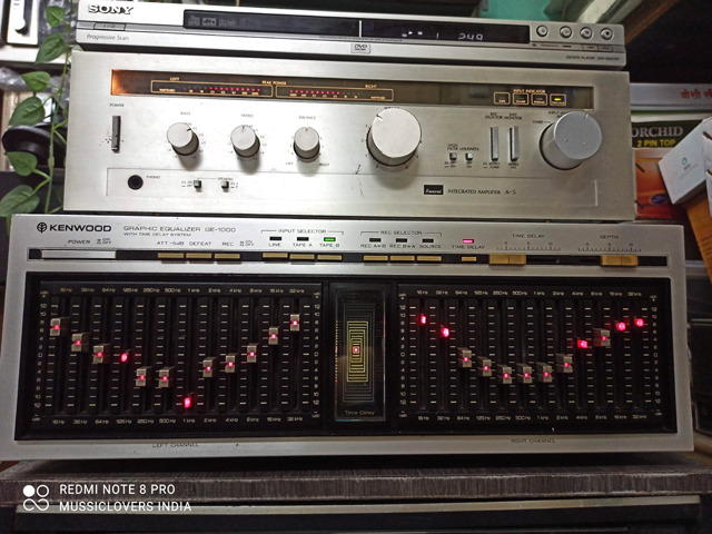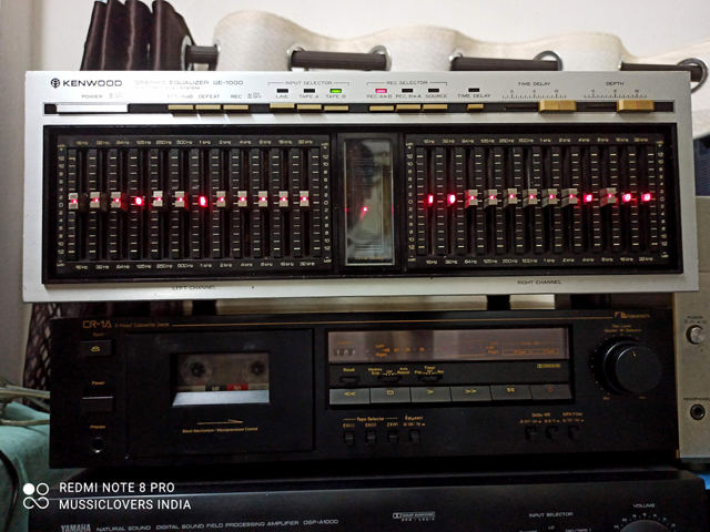 Kenwood GE-1000 Graphic Equalizer with Time Delay System, a rare vintage hi-fi component made in Japan by Trio-Kenwood Corp. This model is highly sought after by audio enthusiasts and collectors due to its advanced features and unique time delay function.